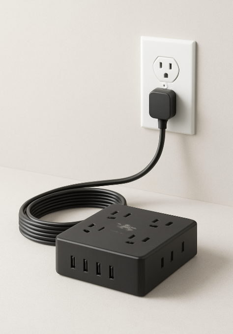 Charge all your devices at once with 8 wide-spaced AC outlets, 2 USB-C, and 2 USB-A ports—perfect for laptops, phones, tablets, and more. The 10 ft flat extension cord with a slim angled plug fits easily behind furniture and under carpets. With 1050 Joules surge protection, fire-resistant casing, and overload safeguards, your electronics stay safe. Compact, mountable, and clutter-free, it’s the ideal power solution for home, dorm, or office.
